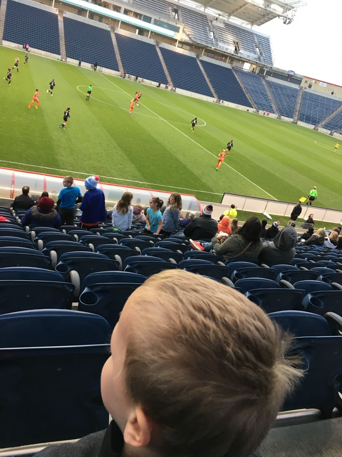 Based on the photographic evidence, the first match I took him to was on April 21, 2018, when he was still just 4. The Red Stars and Sky Blue FC played out a 1-1 draw and he had a merry time with concessions. A better photo is from a month later as it gives you a feel for what it was like in the stands: not too full, but easy to see all of the action: